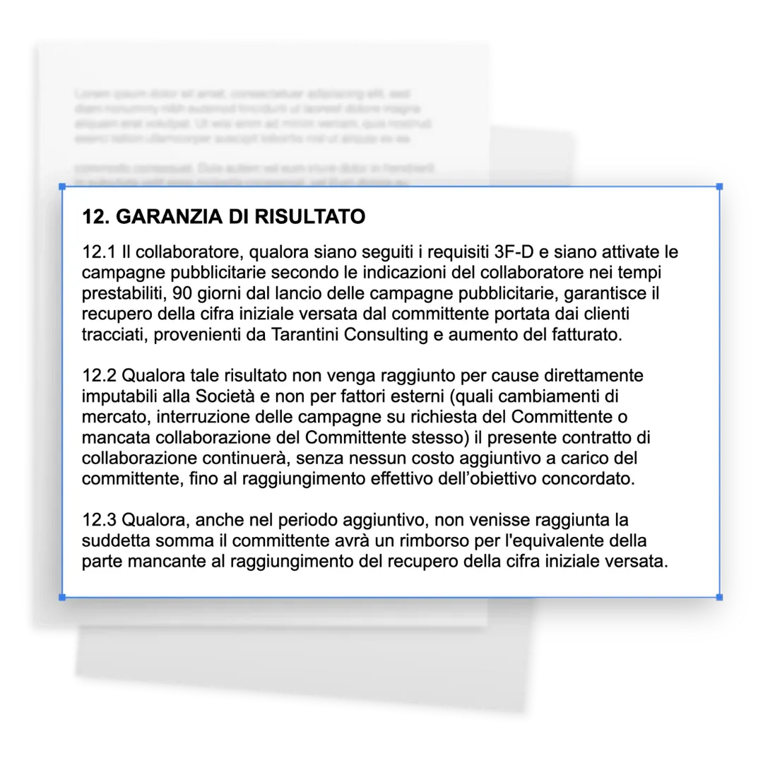 La Tarantini Consulting lavora solo ed esclusivamente con l'esclusiva di zona, per un raggio di 30km.